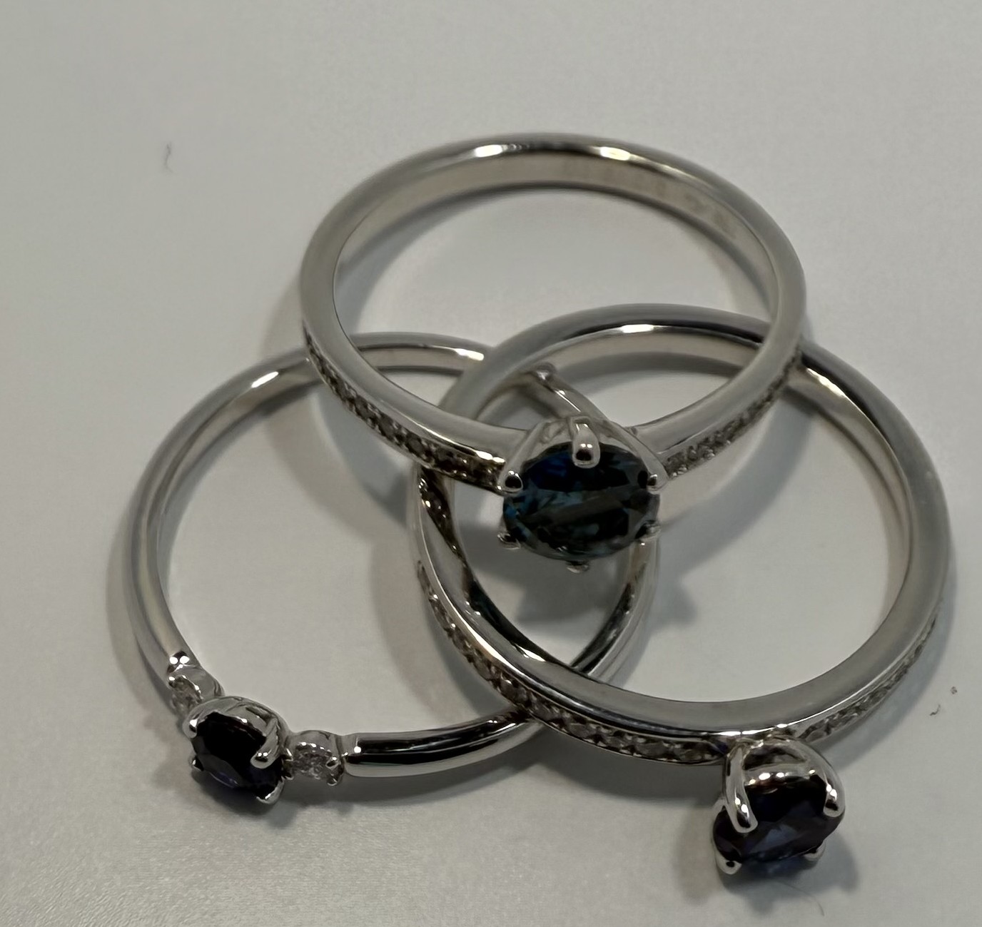 Antragsringe in ganz besonderer Art und leuchtendem Glanz. Hochfeines Weißgold in Verbindung mit blauen Saphiren, oder den sehr seltenen blauen Diamanten, erheben sich zu einer einzigartigen Faszination. Weißgold 585 mit Blau- Saphir 0,05 ct. und 2 Diamanten in Brillantschliff 1.190.- € Weißgold 750 mit Blau- Diamant (Natur, farbbehandelt) Brillantschliff 0,67 ct. 20 Diamanten