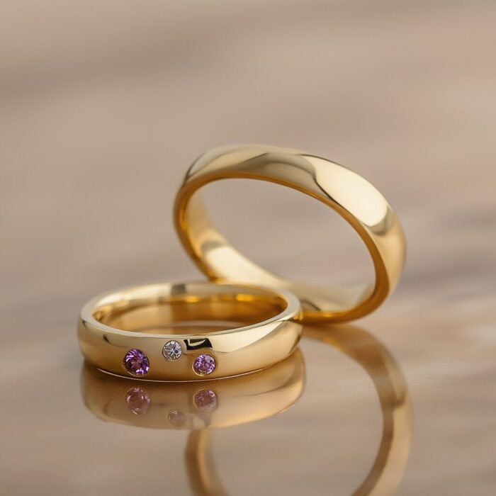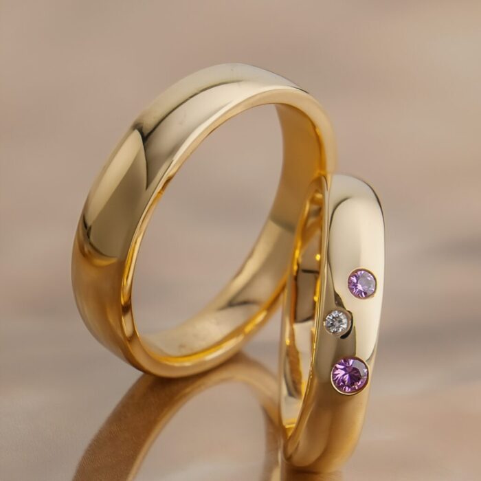 So symbolisieren diese Eheringe den Aufgang der Sonne, einen neuen Tag, Hoffnung und Freude. Wie die goldene Morgenröte