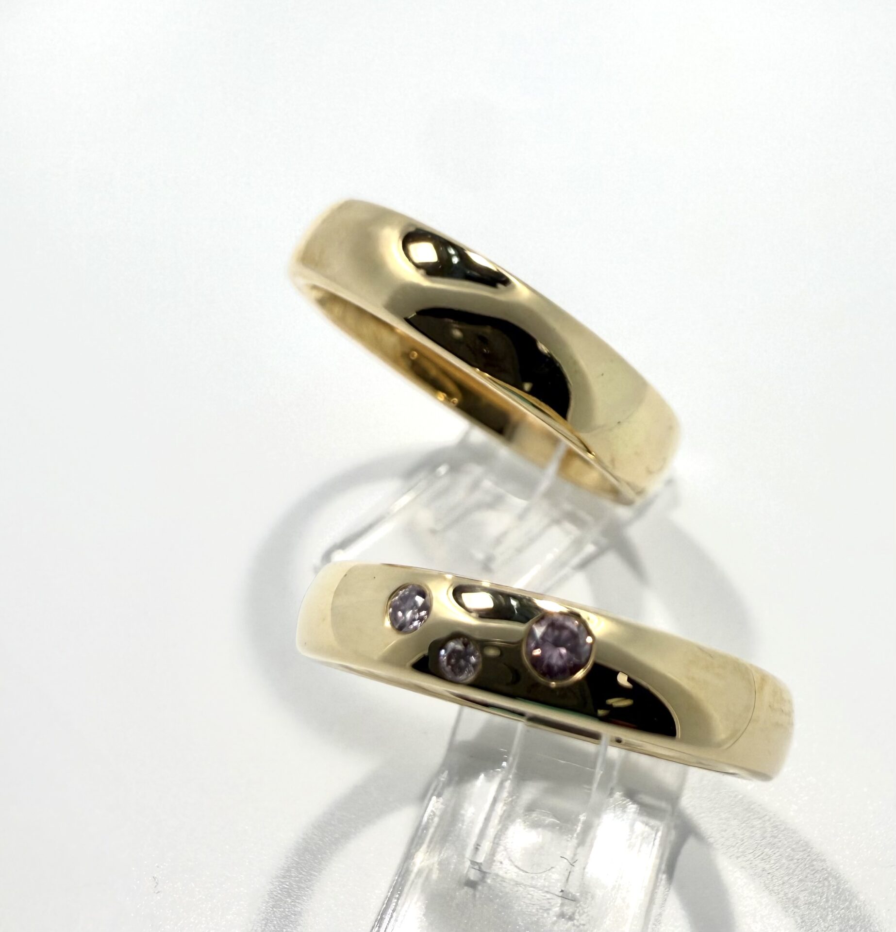 In Roségold und Sattgold strahlt die zarte Kombination dieser Trauringe in farblicher Harmonie in außergewöhnlichem Glanz