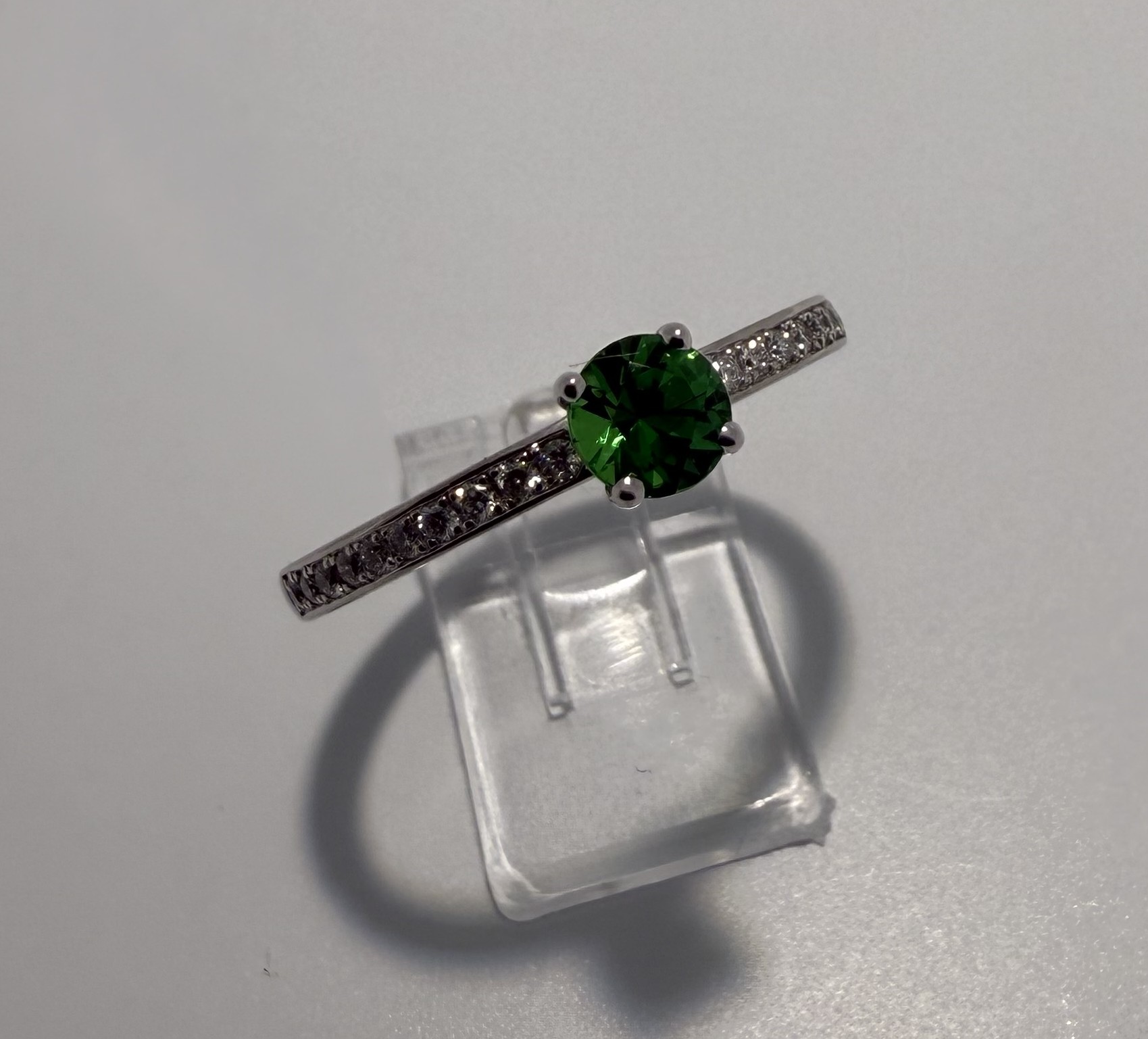 In seiner unverwechselbaren und einzigartigen Farbe leuchtet der Tsavorit in der Farbe des Dschungels.