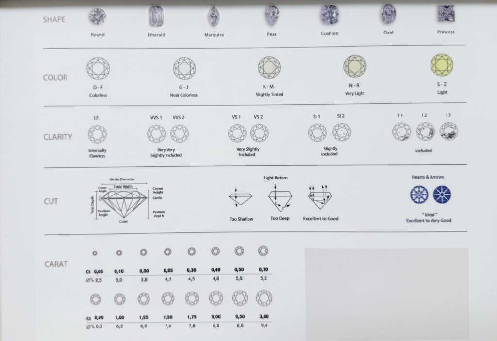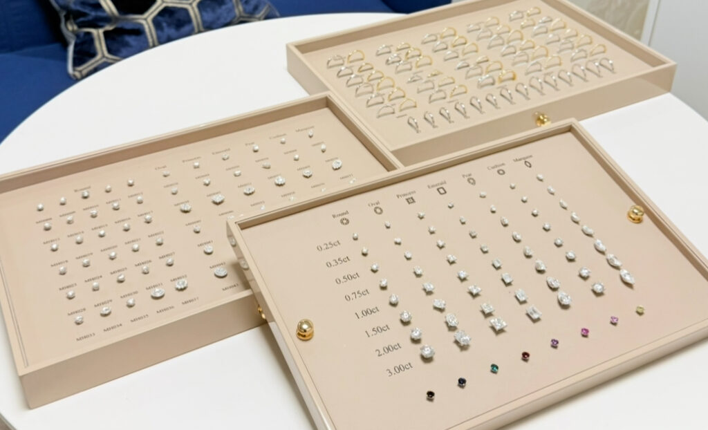 Wählen Sie aus verschiedenen Diamanten und Schliffen, Farben und Größen