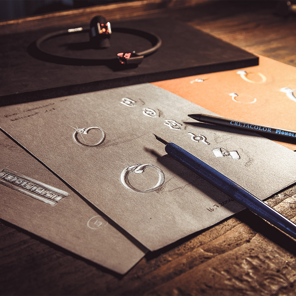 Anhand ausgewählter Materialproben, Oberflächen und Edelsteine wird aus Ihrer Vorstellung Schritt für Schritt ein Ring zum Ja-Sagen.
